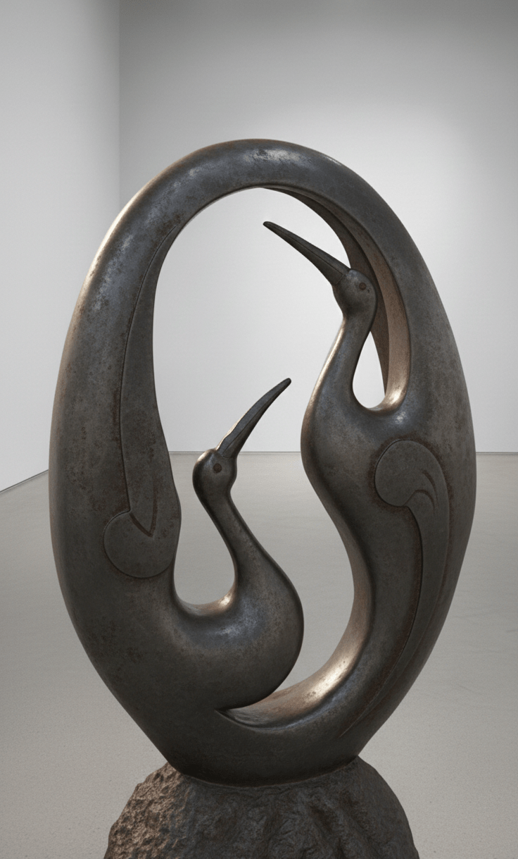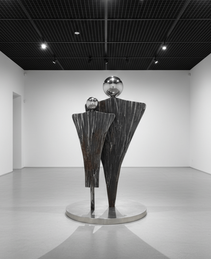 Soyut metal heykel, modern demir heykel sanatı, el dövmesi figüratif heykeller.